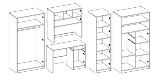 Nowoczesny, funkcjonalny i pojemny zestaw, który znajdzie swoje miejsce zarówno w pokoju młodzieżowym, dziecięcym jak też w salonie i stanowi idealne miejsce do nauki lub zabawy.