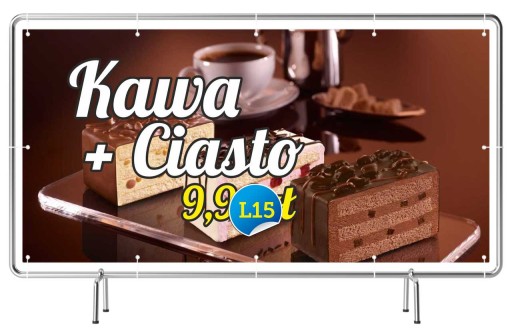 Przedmiotem aukcji jest baner reklamowy o wymiarach 2m x 1m (jesteśmy w stanie wykonać dowolny rozmiar) na materiale plandekowym wysokiej jakości.