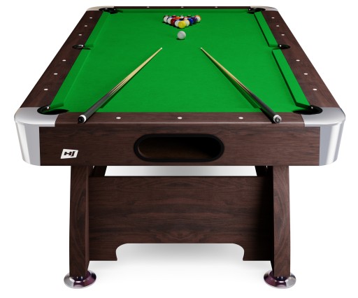 Stół bilardowy spływowy 8 ft w kolorze brązowym z suknem zielonym