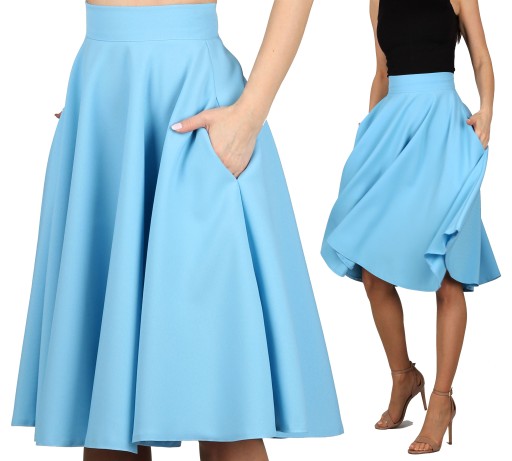 Spódnica uszyta jest z pełnego koła z kieszeniami .
