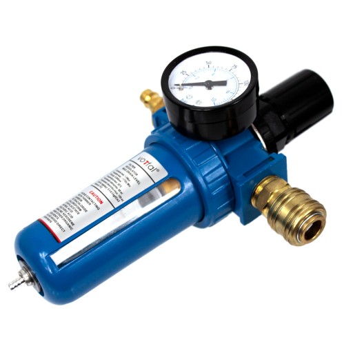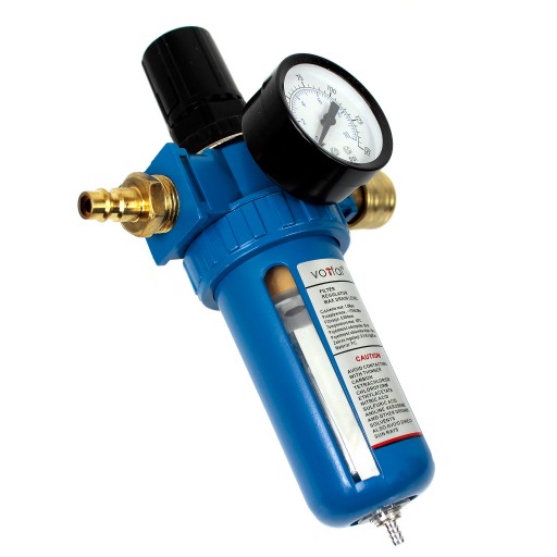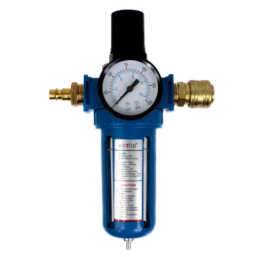 Filtr z reduktorem służy do osuszania i regulacji ciśnienia powietrza. Jest niezbędnym elementem każdej instalacji pneumatycznej. Stosując ten filtr zapobiegasz między innymi; rdzewieniu narzędzi, zaciekom podczas malowania pistoletami lakierniczymi, uszkodzeniom węży itp.