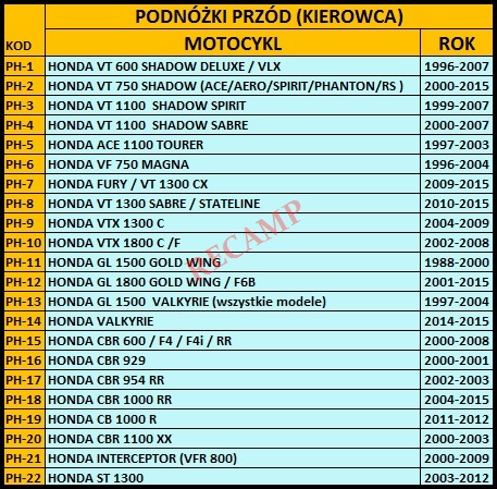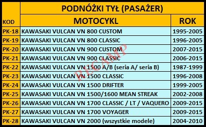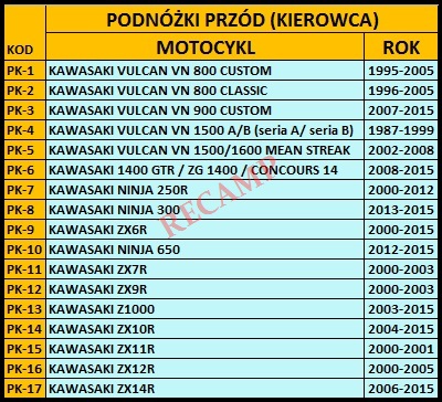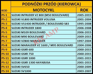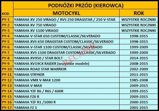 Jeśli na liście nie ma modelu motocykla - jest szansa na dopasowanie odpowiednich podnóżek