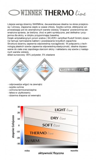 - Skład materiału: THERMOline (95% Polyester, 5% Elastane)