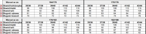Możliwa tolerancja wymiarów koszuli +/-1cm.