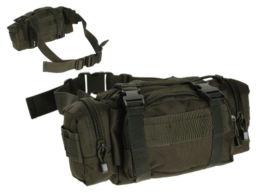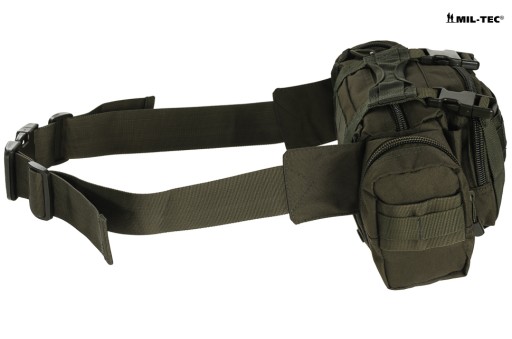 Uniwersalna torba biodrowa o specyfikacji militarnej. Produkt niemieckiej firmy Mil-Tec. Polecana miłośnikom trekkingu, biegania i turystyki. Pozwoli na wygodne przenoszenie podręcznych i cennych przedmiotów. Idealna na aparat, telefon, portfel, butelkę wody, kanapkę, okulary lub jako apteczka. Wyposażona w taśmy systemu modularnego MOLLE 25mm oraz LC2 - pozwoli na zamocowanie torby na plecaku, kamizelce taktycznej lub pasie. System kieszeni umożliwi spakowanie i organizację ekwipunku. Dzięki licznym przegrodom każdy, nawet drobny przedmiot znajdzie swoje miejsce. Wykonana z podgumowanego nylonu 600D - wodoodporny i bardzo wytrzymały materiał. Zamykana na solidne ekspresy z metalowymi suwakami, specjalna konstrukcja wykorzystująca listwy uszczelniające zwiększa wodoodporność. Dodatkowe pętelki przy suwakach ułatwiają otwarcie kieszeni. Panel tylny, przedni i dwa boczne w systemie modularnym. Taśmy montażowe MOLLE 25mm i LC2 pozwalają na zamocowanie dodatkowych kieszeni (np. apteczka lub dodatkowa kieszeń). Troki kompresyjne zabezpieczają ładunek przed przemieszczaniem. Wygodny chwyt walizkowy do przenoszenia. Główna przestrzeń ładunkowa z wewnętrzną kieszenią z siatki. Dwie boczne kieszenie na drobiazgi. Kieszeń od frontu z przegrodą i dwiema wewnętrznymi kieszonkami. Wygodny, szeroki pas biodrowy w z szybką regulacją długości, zapinany na klamrę z tworzywa ABS. Ukryta kieszeń pozwoli na schowanie taśmy biodrowej. Solidne szycia, wzmocnienia w newralgicznych miejscach i obszycia z lamówki gwarantują wytrzymałość.