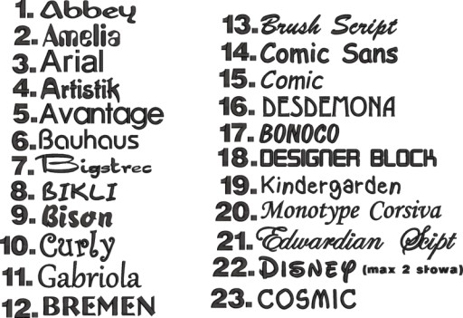 - KOLOR CZCIONKI (NIĆ -dowolna)