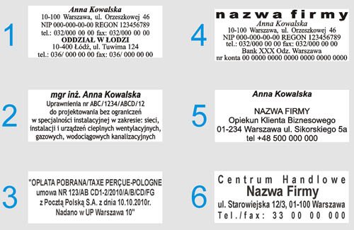 - treść przesłać proszę w formie tekstu, nie przepisujemy ze skanów, zdjęć itp. Można wysłać zdjęcie lub skan na wzór, ale oprócz tego przepisany tekst pieczątki w mailu.