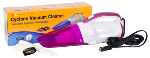 Odkurzacz ręczny do czyszczenia wnętrza samochodu, zasilany jest z gniazdka DC 12V. Wyposażono go w przezroczysty zbiornik, zapewniający operatorowi kontrolę stanu napełnienia.