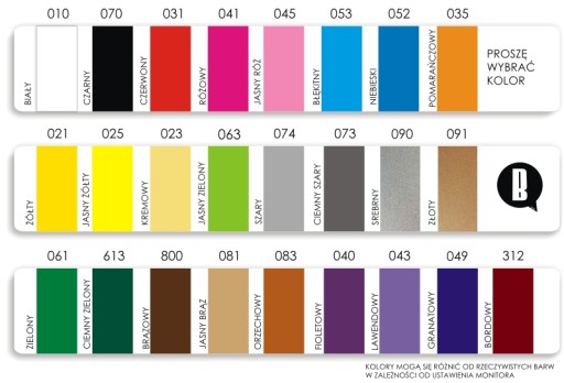 - Poniżej znajdą Państwo PALETĘ KOLORÓW ORAZ WZORY DO WYBORU