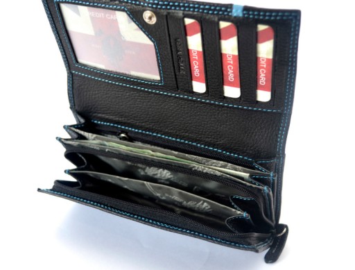 - Bardzo wytrzymała skóra, miła w dotyku, o głębokiej barwie. Kolekcję charakteryzują ozdobne wykończenia i przeszycia w kontrastowym kolorze, które dodają portfelowi oryginalności, niepowtarzalności i uroku.