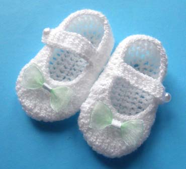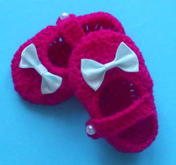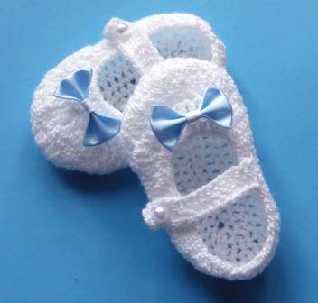 Buciki mogą być wykonane w dowolnym kolorze włóczki i dodatków - z kokardkami satynowymi(atłasowymi) lub szyfonowymi(tiulowymi).