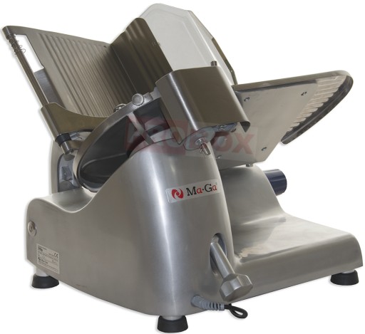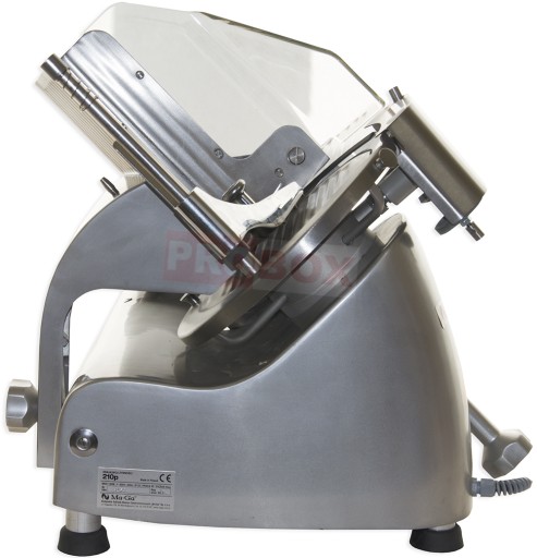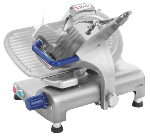 Krajalnica żywności Ma-Ga 210p z nożem o średnicy 250 mm przeznaczona do użytku w sklepach, gastronomii czy cateringu. Wykonana z wysokiej jakości materiałów zapewniających trwałość oraz estetyczny wygląd. Części mające kontakt z żywnością ze stali nierdzewnej, zaś pozostałe elementy z anodowanego aluminium.