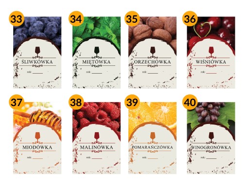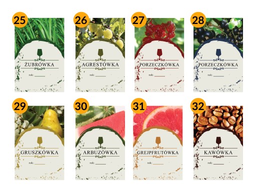 Przedmiotem aukcji jest zestaw 6 naklejek na Nalewkę, do wyboru w obrębie z dostępnych wzorów.