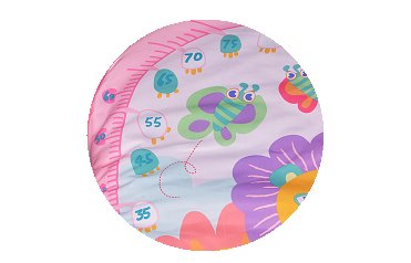 Mata jest ozdobiona uroczym nadrukiem kwiatków i motyli z orientacyjną miarką wzrostu.