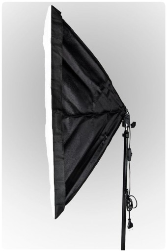 Do softboxu można zamontować jedną żarówkę o maksymalnej mocy 85W. Zestaw mocuje się na statywie oświetleniowym, który umożliwia dowolną regulację kąta nachylenia. W komplecie znajduje się kabel zasilający z włącznikiem.