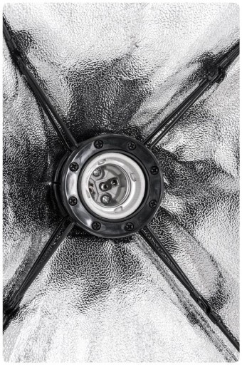 Softbox MonoHead™ wykonany został z najwyższej jakości tworzywa. Od wewnątrz wykończony jest srebrną, odblaskową powierzchnią - nie tylko zapobiega "uciekaniu" światła do tyłu i na boki, ale także odbija je w pożądanym kierunku. Sprawia to, że do fotografowanego obiektu trafia zwielokrotniona ilość światła, rozproszonego przez znajdujący się z przodu materiał dyfuzyjny. Od zewnątrz softbox jest matowo czarny, dzięki czemu nie odbija światła z innych lamp.