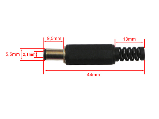 Przedmiotem aukcji jest wtyk zasilający DC o średnicy wewnętrznej 2,1 mm i zewnętrznej 5,5 mm długość części metalowej 14 mm.
