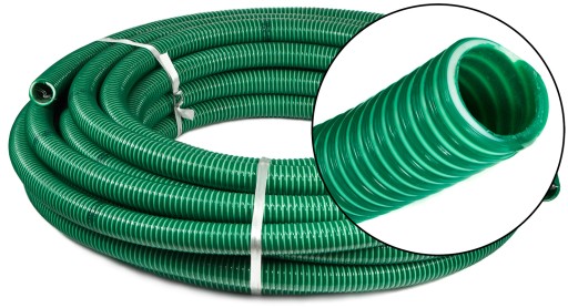 STRUKTURA: ścianka koloru zielonego ze zmiękczonego PCV, biała spirala z twardego PCV, powierzchnia wewnętrzna gładka