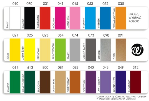 - Poniżej znajdą Państwo PALETĘ KOLORÓW I WZORY DO WYBORU