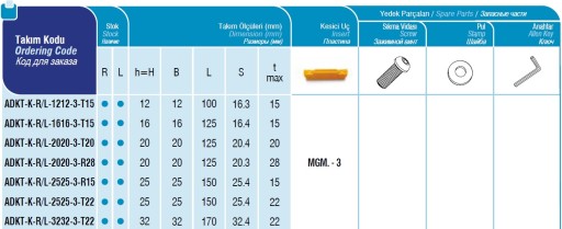 NÓŻ TOKARSKI SKŁADANY PRZECINAK ADKT K-R 2525 3 T22 NA PŁYTKĘ MGMN 300