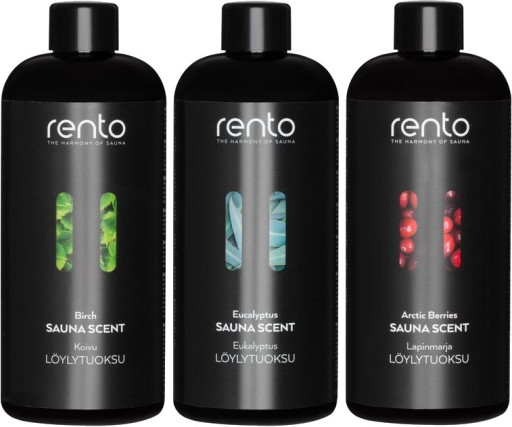 Zapachy Rento to silnie skoncentrowane aromaty do sauny. Butelka zawiera 400 ml, ale dodając już 20 - 40 ml zapachu do pełnego cebra wody(4L wody), wystarczy by delektować się delikatną i aromatyczną parą. Butelka aromatu odpowiada 10 do 20 cebrom wody. Aromat pochodzi z fińskiej produkcji i jest produkowany z najwyższą starannością.