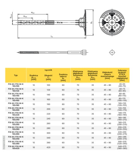 DŁUGOŚĆ KOŁKA ZALEŻY OD GRUBOŚCI MATERIAŁU IZOLACYJNEGO