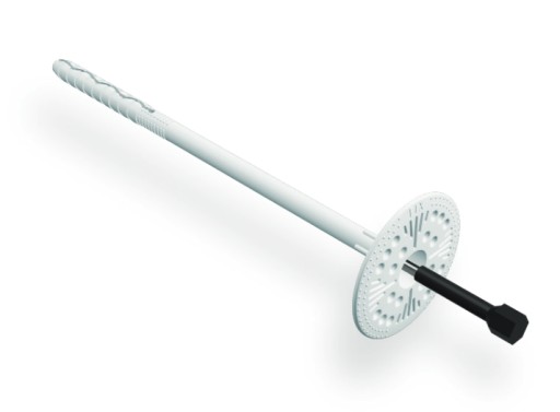 - Konstrukcja talerzyka kołka jest wzmocniona oraz chropowata co pozwala na łatwe pokrycie go klejem i warstwą tynku.