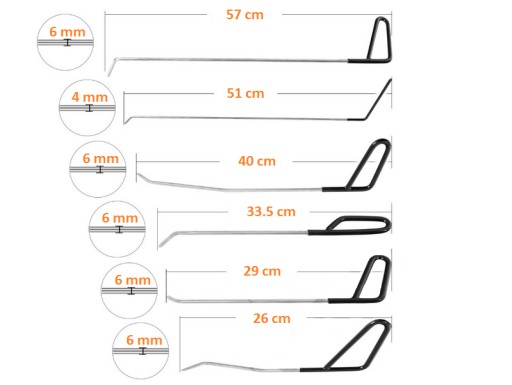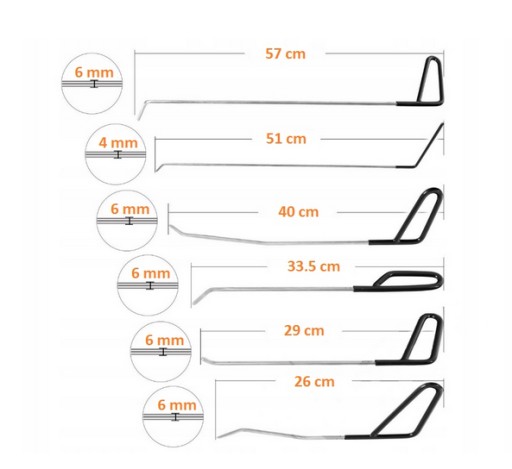 ⚡ 6 Drutów/Lanc PDR (solidne, stal nierdzewna- polerowana i hartowana, rękojeść gumowana, odpowiednio wygięte, wytrzymałe o różnych zakończeniach)