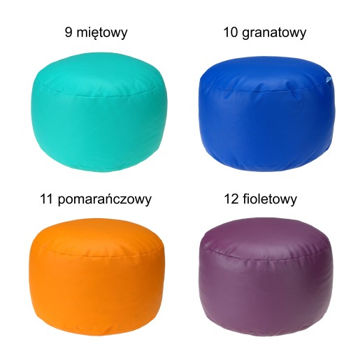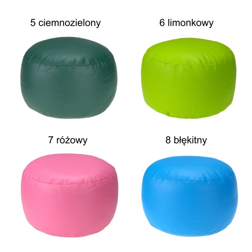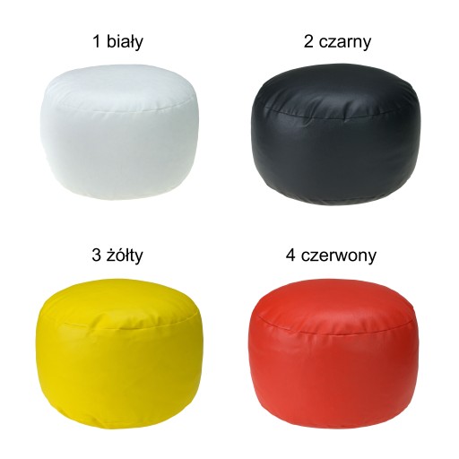 Przedmiotem aukcji jest okrągła pufa roller, w 20 wersjach kolorystycznych do wyboru. Wymiary pufy to 40cm średnicy i 25cm wysokości. Wersję kolorystyczną można wybrać dowolnie przy zakupie, wybierając wersje kolorystyczne z wzornika lub palety barw znajdującej się na aukcji. Instrukcję dot. dobierania kolorów opisujemy w tekście poniżej. Pufa jest meblem bezszkieletowym, dlatego jej wymiary mogą się zmieniać w zależności od wagi osoby użytkującej, ułożenia pufy lub doboru wypełnienia. Pufa jest standardowo wypełniona mieszanką sprężystych materiałów do produkcji mebli, które zapewniają trwałość i komfort użytkowania. Roller został wykonany z ekoskóry dollaro, która posiada atest PZH.