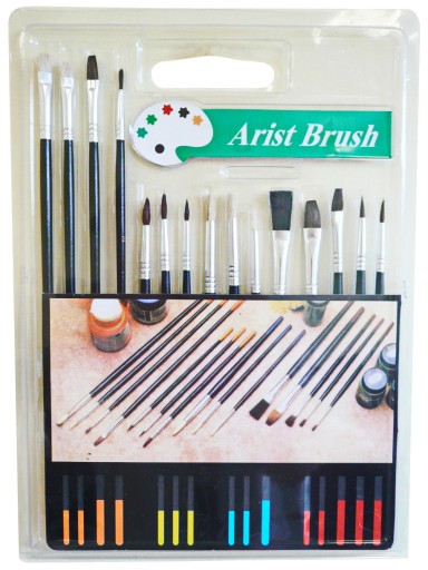 PĘDZLE 15 sztuk (płaskie i okrągłe)