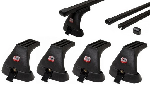 Bagażnik bazowy przeznaczony do większości samochodów dostępnych na polskim rynku wyposażonych w fabryczne punkty montażowe (ZACZEPY NA DACHU). Montaż odbywa się poprzez założenie uchwytów mocujących do stalowych belek (do dolnej, jedynej szczeliny w belce). Zmontowaną całość (belki plus uchwyty) zakładamy na przygotowane punkty montażowe w aucie. Na styku dachu auta z łapami zastosowano specjalną gumę chroniącą dach przed zarysowaniem. Nośność prezentowanego bagażnika wynosi 70 kg - chyba, że producent zaleci mniej.