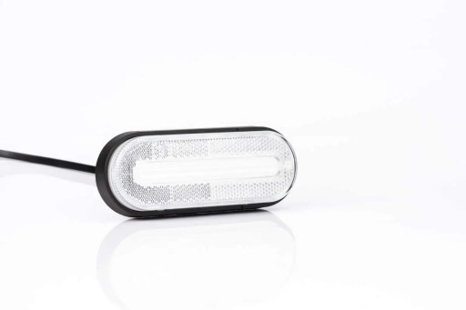 Biała lampa obrysowa led z odblaskiem, producent Fristom, model FT-070. Montowana na płasko.