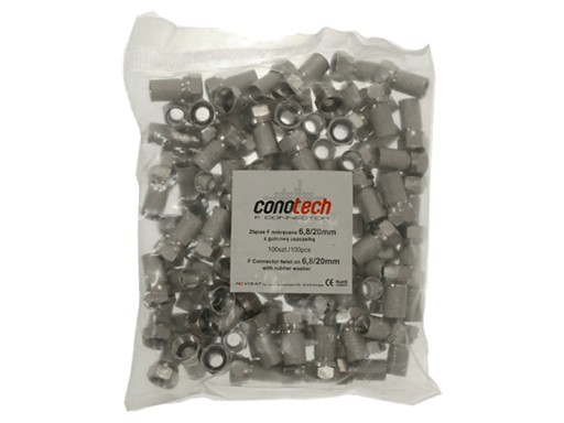 Wtyk typu F, na przewód o średnicy zewnętrznej 6,8mm. Wyposażony w gumową uszczelkę (o-ring) zapobiegający przedostawaniu się wilgoci.