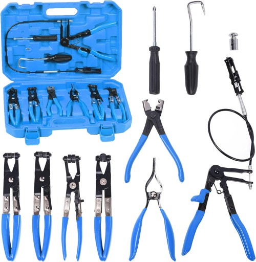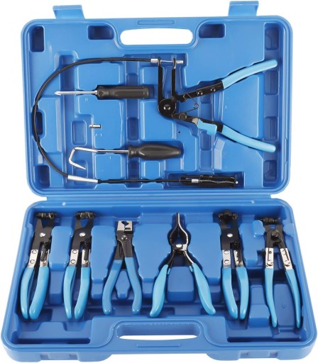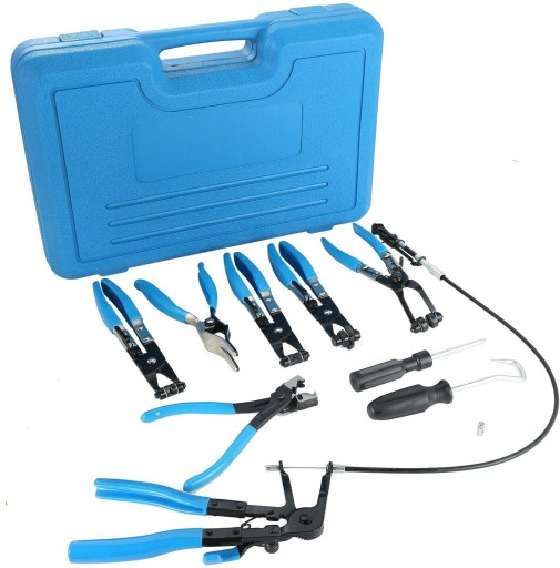 Zestaw szczypiec do opasek zaciskowych, który gwarantuje komfort pracy w serwisie samochodowym czy domowym warsztacie. Wszystkie elementy wykonano z wysokiej jakości materiałów. Szczypce z obrotowymi szczękami pasują do większości rodzajów sprężystych opasek zaciskowych, obrotowe szczęki ponacinane w celu dobrego trzymania dużych i małych zacisków pod dowolnym kątem. Blokada zapadkowa umożliwiająca przytrzymanie szczęk w 5 różnych pozycjach. Blokada pozwala na bezpieczne trzymanie naprężonej opaski.