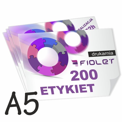 - produkt: ETYKIETY SAMOPRZYLPNE A5 Z TWOIM INDYWIDUALNYM NADRUKIEM W KOLORZE - 200 SZTUK