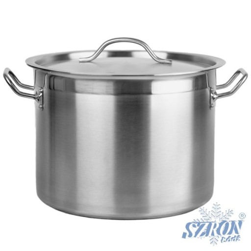 Profesjonalny garnek z pokrywką wykonany ze stali nierdzewnej o poj. 24 litrów. Charakteryzuje się wyjątkową wytrzymałością dzięki specjalnej obręczy wzmacniającej oraz nitowanym uchwytom (nienagrzewające się uchwyty).