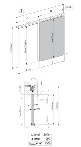 Drzwi przesuwne naścienne MULTI- rysunek techniczny: