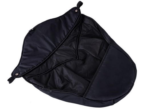 Uniwersalny pokrowiec wykonany jest z materiału wózkowego, wypełniony grubą owatą, wykończony czarną podszewką, pasuje do większości wózków spacerowych (szczególnie do trójkołowych i z obrotowymi przednimi kołami)