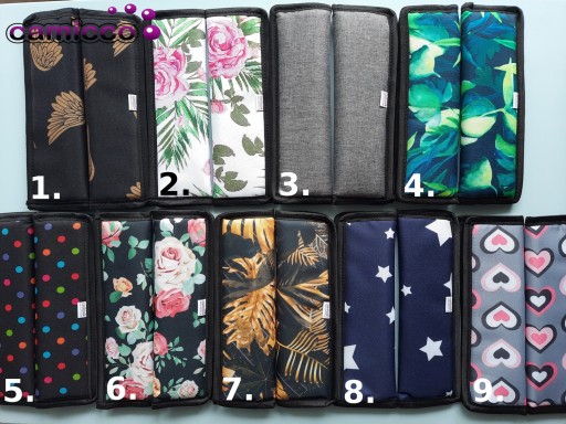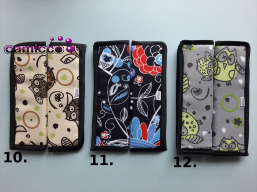 Nakładki na pas bezpieczeństwa, poprawią komfort podróżowania powodując, że pas nie wcina się w ciało oraz wzbogaca wnętrze pojazdu o dodatkowy element. Mocowanie do pasa bezpieczeństwa za pomocą wsunięcia go pomiędzy nakładkę a odpinaną na rzep częścią materiałową.Wykonane z pianki obszytej materiałem wózkowym