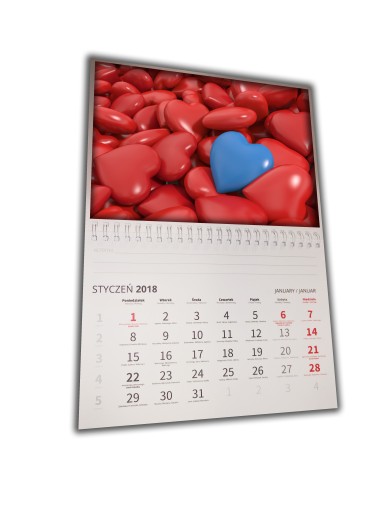 - Jako alternatywa zamiast paska magnetycznego możemy na życzenie klienta wykonać otwór do zawieszenia kalendarza na ścianie