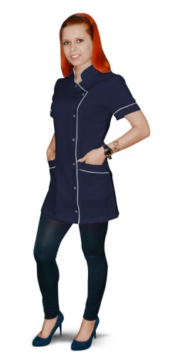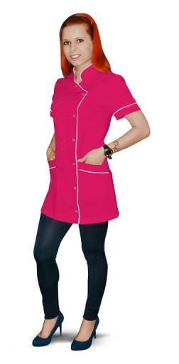 Rękaw fartucha jest krótki, dzięki czemu świetnie nadaje się na cieplejsze pory roku.