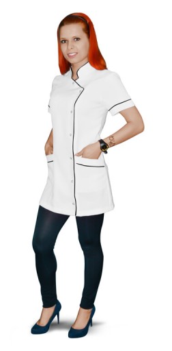 Rękaw fartucha jest krótki, dzięki czemu świetnie nadaje się na cieplejsze pory roku.