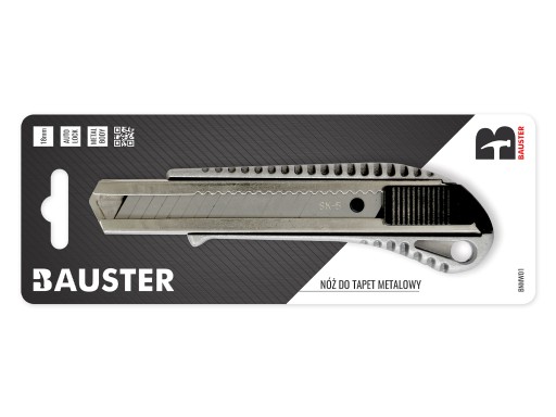 Profesjonalny, wytrzymały nóż uniwersalnego zastosowania marki BAUSTER z ostrzem łamanym 18mm wykonany w całości z metalu.