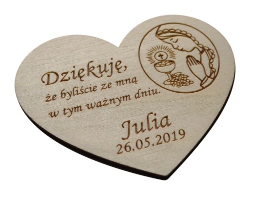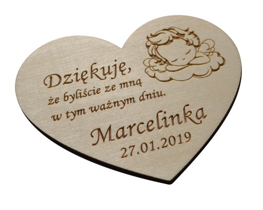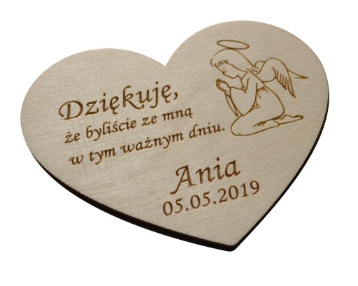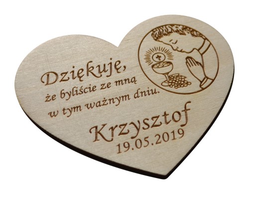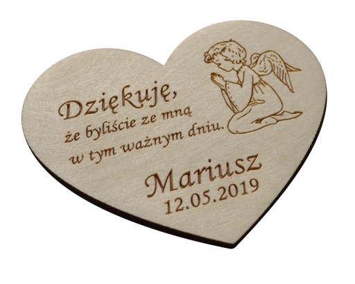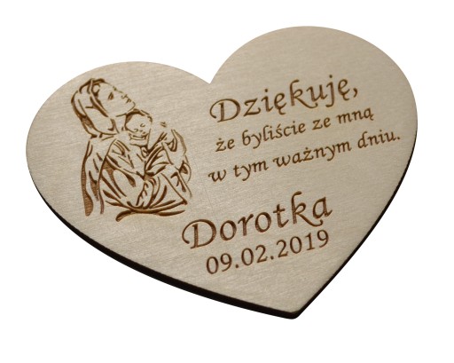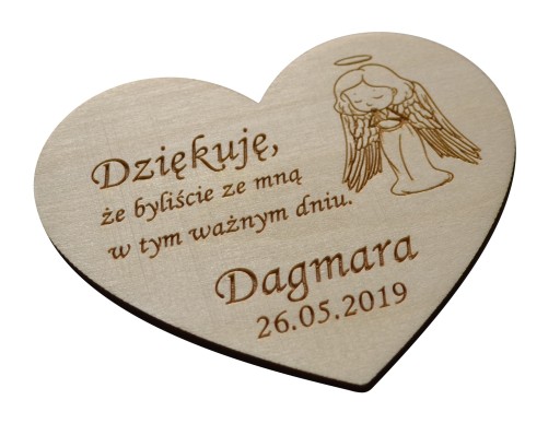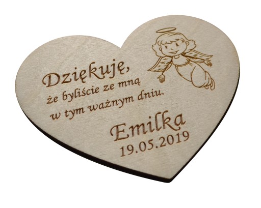 Podziękowanie gościom za przybycie na uroczystość Chrztu lub Pierwszej Komunii Świętej będzie bardzo miłym gestem . Drewniany magnes będzie przywoływał wspomnienia z tej uroczystej chwili w pamięci gości. Z pewnością wszyscy docenią ten gest.