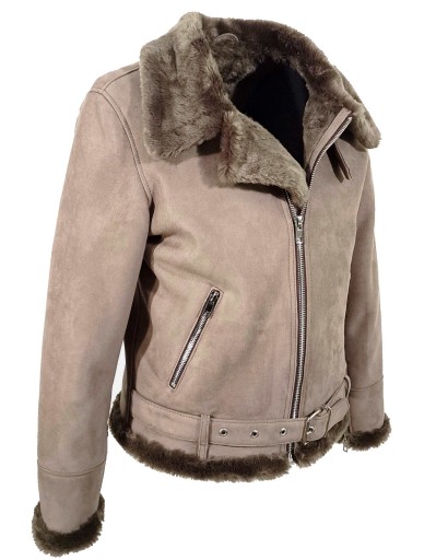 Wykonany z ECO skóry kożuchowej. Zasuwany na zamek błyskawiczny, kołnierz, który można uformować w stójkę za pomocą paska z klamerką. Kieszenie cięte skośne i wygodne z zamkami błyskawicznymi. Rękaw odwinięty włosem na zewnątrz co tworzy zestaw wraz z kołnierzem. Zamki błyskawiczne na końcu rękawów. Kożuch o ponadczasowym kroju dla osób ceniących dobry styl i elegancję.