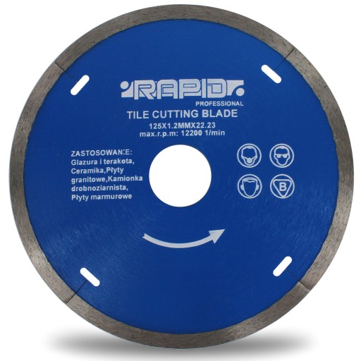 Tarcza diamentowa RAPID fi 125mm do glazury i terakoty, kamienia. Profesjonalna tarcza diamentowa o wysokiej jakości do cięcia. Przeznaczona do pracy w szlifierkach kątowych na sucho i mokro.