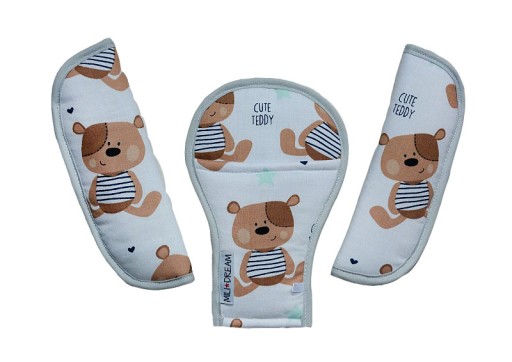 Wypełnienie nakładek stanowi antyalergiczna, certyfikowana włóknina. Jest miękka, stąd też nakładki bardzo dobrze zabezpieczają przed otarciami i są wygodne dla maluszka. Wypełnienie jest wszywane wewnątrz do tkanin zewnętrznych, oraz dodatkowo przepikowane, dzięki temu nie przemieszcza się podczas użytkowania i prania.