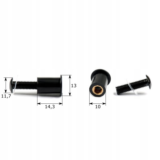 Aluminiowe śruby wraz z gumami mocującymi do szyb motocyklowych.
