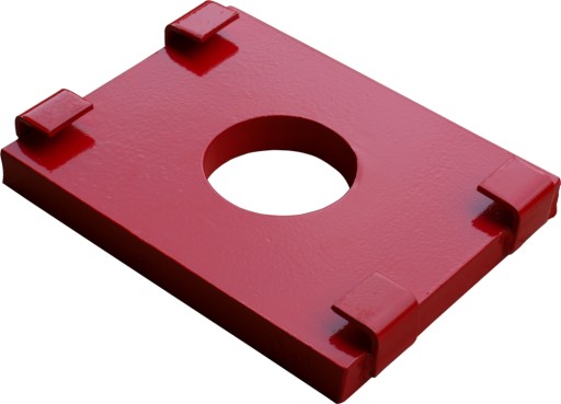 W prasie zastosowana jest płyta mocowania siłownika jak na zdjęciu poniżej (z czterema zagiętymi mocowaniami), umożliwiająca przesuwanie tłoka w lewą i w prawą stronę.