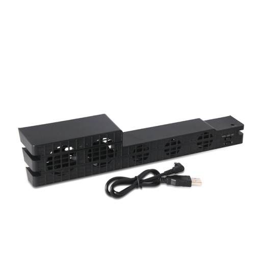 Wysokiej jakości wentylator do konsoli PlayStation 4 PRO zapewniający skuteczne chłodzenie. Nie ogranicza w żaden sposób konsoli, można ja postawić lub położyć. Wyposażony jest w pięć wentylatorów(2 duże, 3 małe) i trzy różne tryby chłodzenia. Przycisk auto który włącza i wyłącza wiatraki by utrzymać konsolę w standardowej temperaturze (ok. 38 stopni). Prędkość turbo do gier które obciążają konsolę. Wentylator zasilany jest poprzez gniazdo USB. Dzięki temu urządzeniu przedłużysz żywotność konsoli.